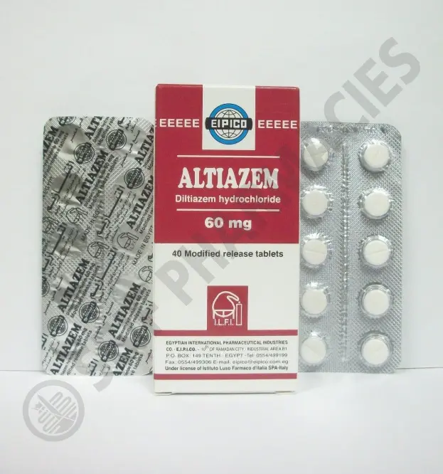 مكونات دواء التيازيم 60 يحتوي دواء التيازيم ٦٠ مجم على: مادة ديلتيازيم هيدروكلوريد (Diltiazem hydrochloride)، والتي تنتمي إلى فئة الأدوية المعروفة باسم حاصرات قنوات الكالسيوم، وتعمل على منع تدفق أيونات الكالسيوم إلى عضلة القلب والأوعية الدموية، ما يؤدي إلى استرخاء العضلات وتوسع الأوعية وتدفق الدم خلالها بسهولة وبالتالي ينخفض ضغط الدم المرتفع. التيازيم دواعي الاستعمال يُستخدم altiazem 60 mg في: علاج ضغط الدم المرتفع والتحكم فيه. منع الإصابة بالذبحة الصدرية أو تخفيف أعراضها. علاج بعض اضطرا