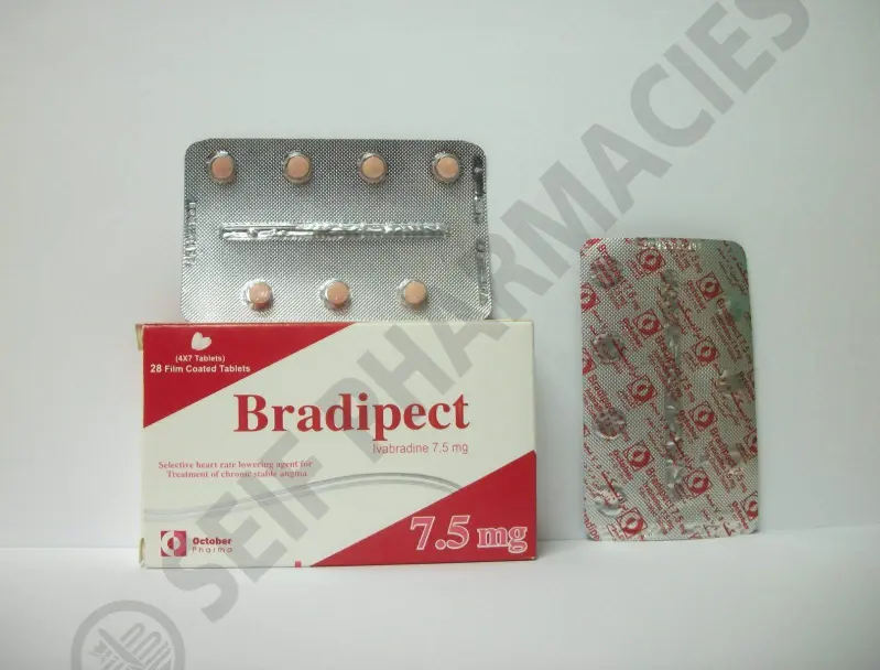 مكونات براديبيكت اقراص ايفابرادين (Ivabradine): مادة فعالة تعمل على إبطاء معدل ضربات القلب مما يساهم في علاج بعض المشكلات، ويحسن من أداء القلب. دواعى استخدام Bradipect يساعد براديبيكت على: الوقاية من والتحكم في آلام الصدر عن طريق تقليل احتياج القلب للأوكسجين. تحسين أداء القلب خاصةً لدى مرضى فشل القلب المزمن. يستعمل هذا الدواء لكلٍ من الحالات التالية: الذبحات القلبية المسببة لآلام الصدر. علاج فشل القلب المزمن لدى البالغين الذين يزيد معدل ضربات القلب لديهم عن 70 دقة في الدقيقة. للأطفال