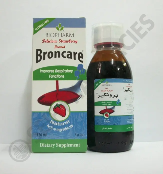 برونكير لعلاج الكحة ونزلات البرد.يستخدم شراب برونكير في علاج السعال والكحة ويخفف من أعراض البرد فهو يتكون من مجموعة من المواد الطبيعية التي لها تأثير مباشر على الجهاز التنفسي ويساعد على إذابة الإفرازات اللزجة مما يسهل طرد البلغم للخارج, كما يعمل على بسط العضلات في القصبة الهوائية مما يسهل عملية التنفس.الجرعة وطريقة الاستخدام:الجرعة الاعتيادية للأطفال أقل من سنتين: يتم تناول نصف ملعقة صغيرة بمعدل ثلاث مرات في اليوم.الجرعة الاعتيادية للأطفال من عمر 2-6 سنوات: يتم تناول جرعة بمعدل 0.5-1 ملعقة صغير