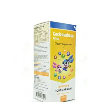 شراب يحتوي على كالسيوم وفيتامينات لدعم نمو العظام والأسنان في مرحلة الطفولة. [الجرعة]: ملعقة صغيرة 1-2 مرة يومياً.