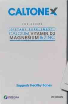 مكونات كالتونكس يحتوي كالتونكس على: كالسيوم (Calcium): عنصر أساسي في تكوين وتقوية العظام والأسنان والوقاية من الهشاشة، إضافةً إلى دوره المهم في مختلف العمليات الحيوية بالجسم. ماغنسيوم (Magnesium): عنصر حيوي في صحة الجسم والعضلات والأعصاب. فيتامين د (Vitamin D): ينظم مستويات الكالسيوم والفوسفات للجسم والمحافظة على صحة العظام والأسنان، إضافةً إلى دوره في تعزيز المناعة والمحافظة على وظائف الجسم المختلفة. زنك (Zinc): عنصر ضروري في تقوية وتعزيز المناعة وتعافي والتئام الجروح وتكوين العديد من الإ