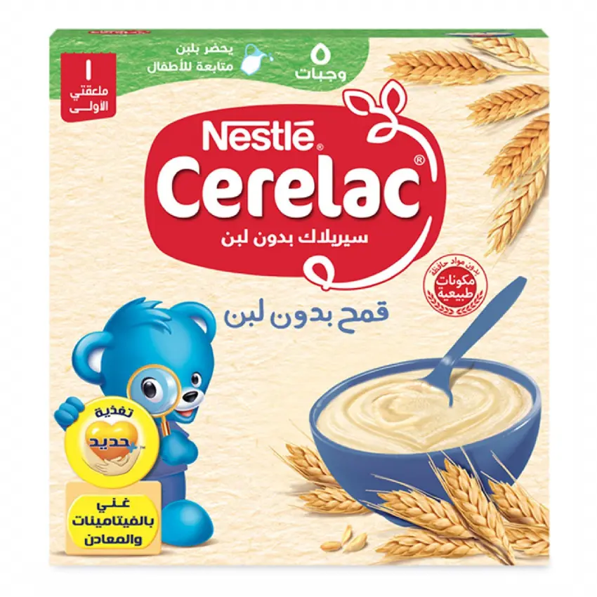 غذاء تكميلي للأطفال يعتمد على حبوب القمح ومدعم بالفيتامينات والمعادن والحديد، يستخدم لبدء مرحلة الفطام وإمداد الطفل بالطاقة اللازمة للنمو. [الـجــرعـة] تحضر الوجبة بإضافة الماء الدافئ المسبق غليه حسب الجدول الموضح على العلبة وعمر الطفل.