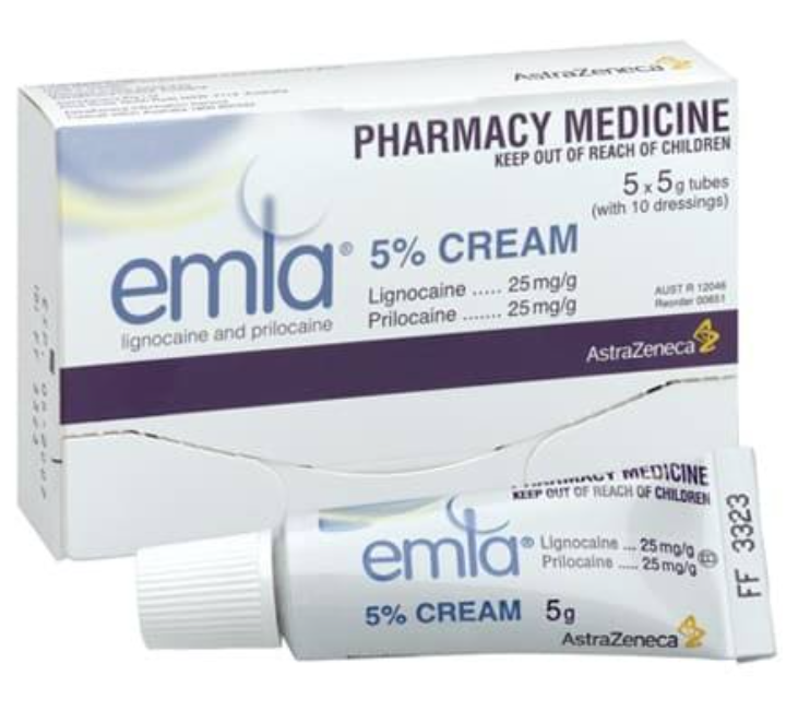 كريم مخدر موضعي للجلد يستخدم قبل إزالة الشعر أو الحقن أو العمليات البسيطة. [الجرعة] يوضع طبقة سميكة ويغطى لمدة ساعة قبل الإجراء.