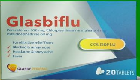 المادة الفعالة:chlorpheniramine maleate, paracetamol, pseudoephedrine