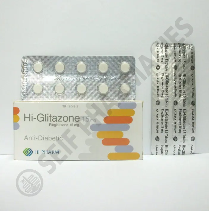 تكوين: كل قرص يحتوي على: بيوجليتازون 15 مجم المؤشرات والجرعة: انظر النشرة المرفقة. يحفظ فى درجة حرارة لاتزيد عن 30 درجة مئوية فى مكان جاف. يحفظ بعيدا عن متناول الأطفال. صنع بواسطة: هاي فارم لصناعة الأدوية والكيماويات المنطقة الصناعية الأولى ، مدينة العبور ، القاهرة ، مصر