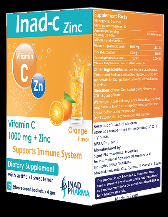 المادة الفعالة:vitamin c 1000 mg, zinc gluconate 104.53 mg