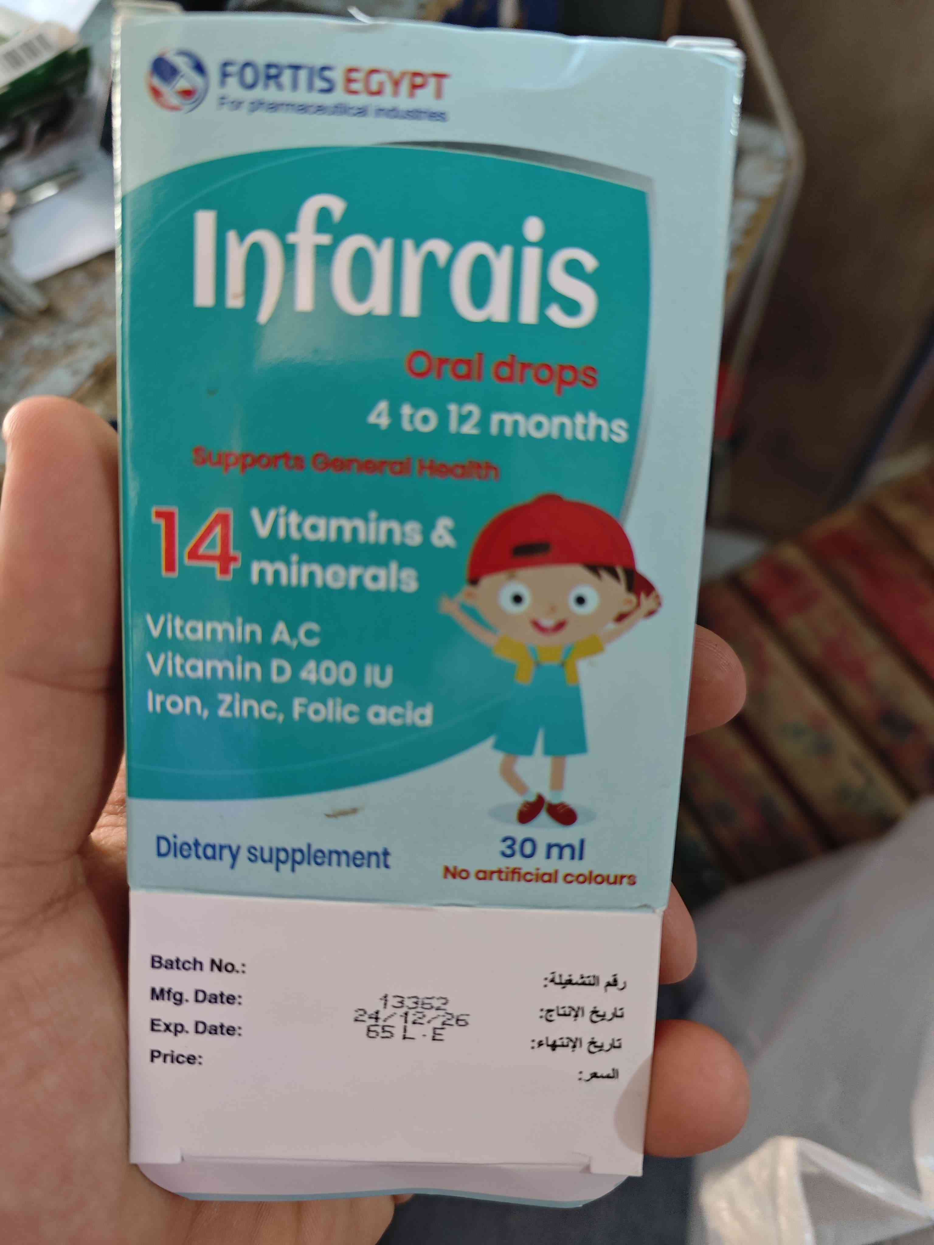 المادة الفعالة:6 essential vitamins and minerals, iron 11mg/1ml, vit a 1167iu/1ml, vit b complex, vit c, vit d 400iu/1ml, zinc