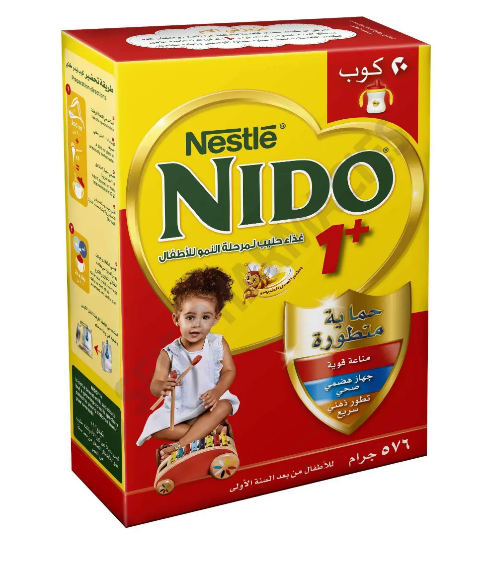 عبوة عائلية من حليب نيدو المخصص لنمو الأطفال [الجرعة] يخلط 6 مكيال في 225 مل ماء دافئ.