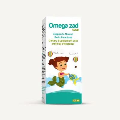 شراب أوميجا 3 وفيتامينات لدعم ذكاء الأطفال وتقوية الذاكرة والمناعة. [الجرعة]: 5 مل مرة يومياً.