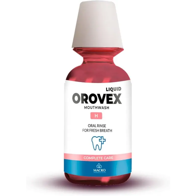 محلول مطهر قوي للفم والحلق يستخدم في حالات التهاب اللوزتين وجراحات الفم. [الجرعة] مضمضة 3 مرات يومياً.