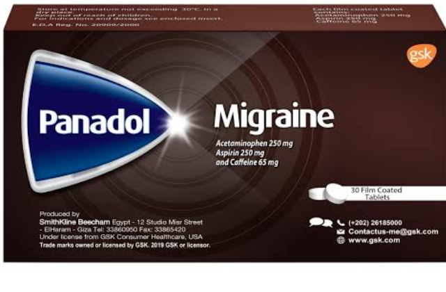 مكونات بنادول ميجران panadol migraineيحتوي بانادول مايجرين على: باراسيتامول (Paracetamol) : يعمل كمسكن للألم وخافض للحرارة يعمل عن طريق منع وصول إشارات الألم من المخ إلى أعضاء الجسم المختلفة. كافيين (Caffeine): مادة منبهة للجهاز العصبي، تعزز من تأثير مادة الباراسيتامول في تسكين الآلام. حمض أسيتيل الساليسيليك (Acetylsalicylic acid): ويعرف بالأسبرين، وهو مادة لها تأثير مسكن ومضاد للالتهابات، فعالة في تخفيف نوبات الصداع النصفي والعديد من الآلام.دواعى استعمال بانادول مايجرين اقراصيستعمل دو