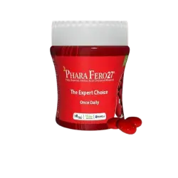 كبسولات حديد مخلبية بتركيز 27 مجم، تتميز بعدم التسبب في إمساك أو آلام معدة، تستخدم لعلاج أنيميا نقص الحديد. [الجرعة]: كبسولة واحدة يومياً.