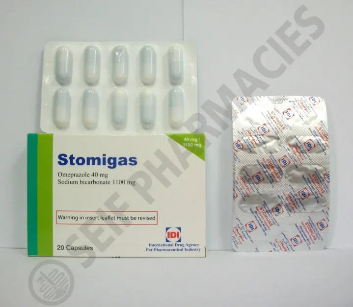 مكونات ستوميجاز حبوب يحتوي stomigas capsoule على: اوميبرازول (Omeprazole): مادة فعالة تمنع مضخات البروتون (المسؤولة عن إفراز حمض المعدة) من العمل بشكل صحيح مما يقلل من كمية الحمض الموجودة فى المعدة. بيكربونات الصوديوم (Sodium Bicarbonate): مادة مضادة للحموضة، تعمل على تخفيف الحرقة وعسر الهضم الحمضي، عن طريق معادلة حمض المعدة بما له من فاعلية كمادة قلوية. دواعي استعمال stomigas يستعمل stomigas 40 لكلٍ من الحالات التالية: قرحة المعدة والأثنى عشر. ارتجاع المريء، والتهاب المريء المتآكل. عسر