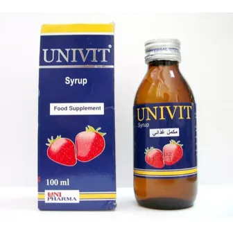 مكونات يونيفيت شرابيحتوي يونيفيت شراب على:فيتامين ب12 (Vitamin B12): فيتامين هام لنمو وصحة الجسم يساعد على تجديد الخلايا وتصنيع كريات الدم، كما أنه يقي من بعض حالات فقر الدم.فيتامين ب6 (Vitamin B6): يدعم ويحسن من صحة الخلايا العصبية ويقي من التنميل والتهاب الأعصاب.فيتامين ب1 (Vitamin B1): فيتامين ضروري في تنظيم عمليات التمثيل الغذائي كما أنه يدعم ويحسن صحة الجهاز العصبي ويحسن من إنتاج الجسم للطاقة.فيتامين ب2 (Vitamin B2): فيتامين يساعد الجسم على تحسين عمليات التمثيل الغذائي للكربوهيدرات والبرو