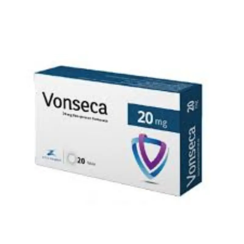 .product-details p {font-size: 14px; font-weight: 300; line-height: 1.7; color: #1b5e20; margin-bottom: 14px;} .product-details h3 {font-size: 21px; font-weight: 700; color: #e65100; margin-bottom: 8px;} الوصف تنتمي أقراص فونسيكا 20 مجم إلى فئة جديدة من مثبطات الحمض تسمى حاصرات الحمض التنافسية للبوتاسيوم (PCABs). على عكس مثبطات مضخة البروتون التقليدية، يعمل فونوبرازانت عن طريق منع موقع ارتباط البوتاسيوم بمضخة البروتون بشكل تنافسي. ينتج عن ذلك تثبيط أسرع وأقوى وأكثر استدامة لحمض المعدة، مما يجعله فعالاً للغاية للحالات المقاومة المرتبطة بالحمض. دواعي الاستعمال يوصف لعلاج التهاب المريء التآكلي (الشفاء والصيانة)، ومرض ارتجاع المريء (GERD)، وقرحة المعدة والاثني عشر، وكجزء من نظام القضاء على جرثومة المعدة (Helicobacter pylori). المادة الفعالة وآلية العمل فونوبرازانت فومارات 20 مجم. يثبط نظام إنزيم H+/K+-ATPase في خلايا المعدة الجدارية بشكل تنافسي وعكسي. لا يتطلب تنشيطاً حمضياً وهو مستقر في الحمض، مما يسمح بالتأثير الفوري. الفوائد يحقق راحة سريعة من الأعراض، غالباً في اليوم الأول. يوفر تحكماً فائقاً في الحمض مقارنة بمثبطات مضخة البروتون القياسية، خاصة في الليل. فعال للغاية في علاج جرثومة المعدة عند دمجه مع المضادات الحيوية. المكونات فونوبرازانت فومارات 20 مجم. طريقة الاستخدام تناول قرصاً واحداً يومياً مع أو بدون طعام. للقضاء على جرثومة المعدة، يؤخذ مرتين يومياً مع المضادات الحيوية لمدة 7-14 يوماً. اتبع تعليمات الطبيب. موانع الاستعمال فرط الحساسية لفونوبرازانت. يمنع الاستخدام المتزامن مع أتازانافير أو ريلبيفيرين. التفاعلات الدوائية قد يزيد من تركيزات الديجوكسين. قد يقلل من امتصاص الأدوية التي تتطلب حمضاً للامتصاص (مثل الكيتوكونازول والحديد). تحذيرات واحتياطات قد يقلل الاستخدام طويل الأمد من امتصاص فيتامين ب12 والمغنيسيوم. راقب وظائف الكبد إذا استخدم لفترات طويلة. أبلغ عن الإسهال الشديد. التخزين يحفظ في درجة حرارة أقل من 30 درجة مئوية في مكان جاف. حجم العبوة 28 قرص مغلف.